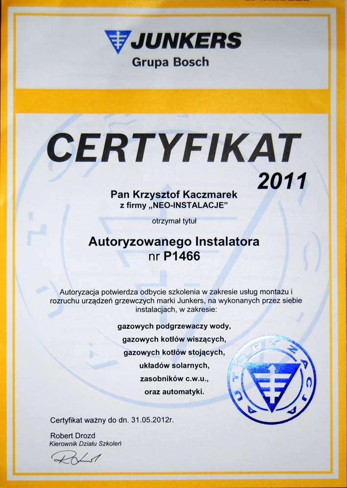 certyfikat JUNKERS