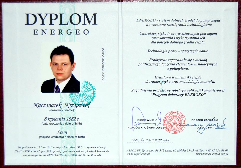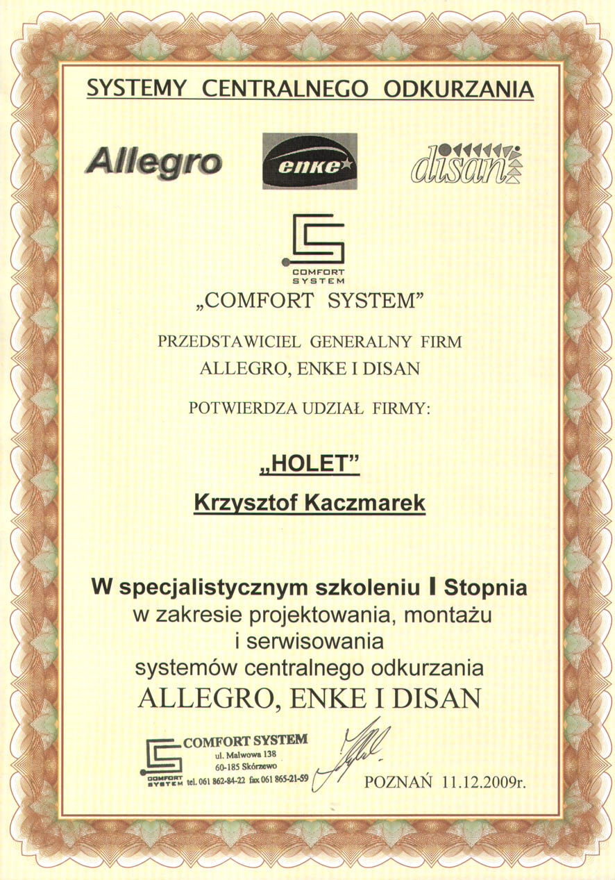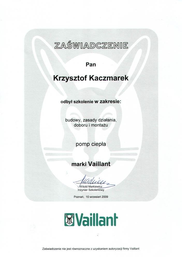 Certyfikat Autoryzowanego Instalatora